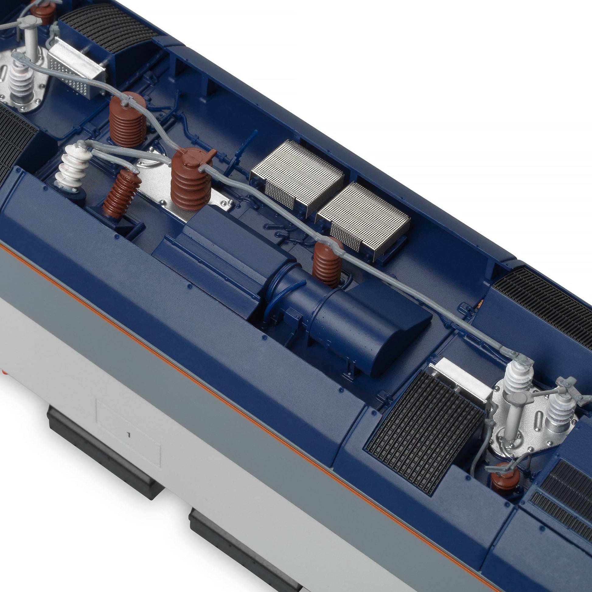 - Separat angebrachte geätzte Metall- und hochpräzise Kunststoff-Detailteile, darunter Haltegriffe, Trittstufen, Scheibenwischer, Namensschilder, Wappen und mehr.
