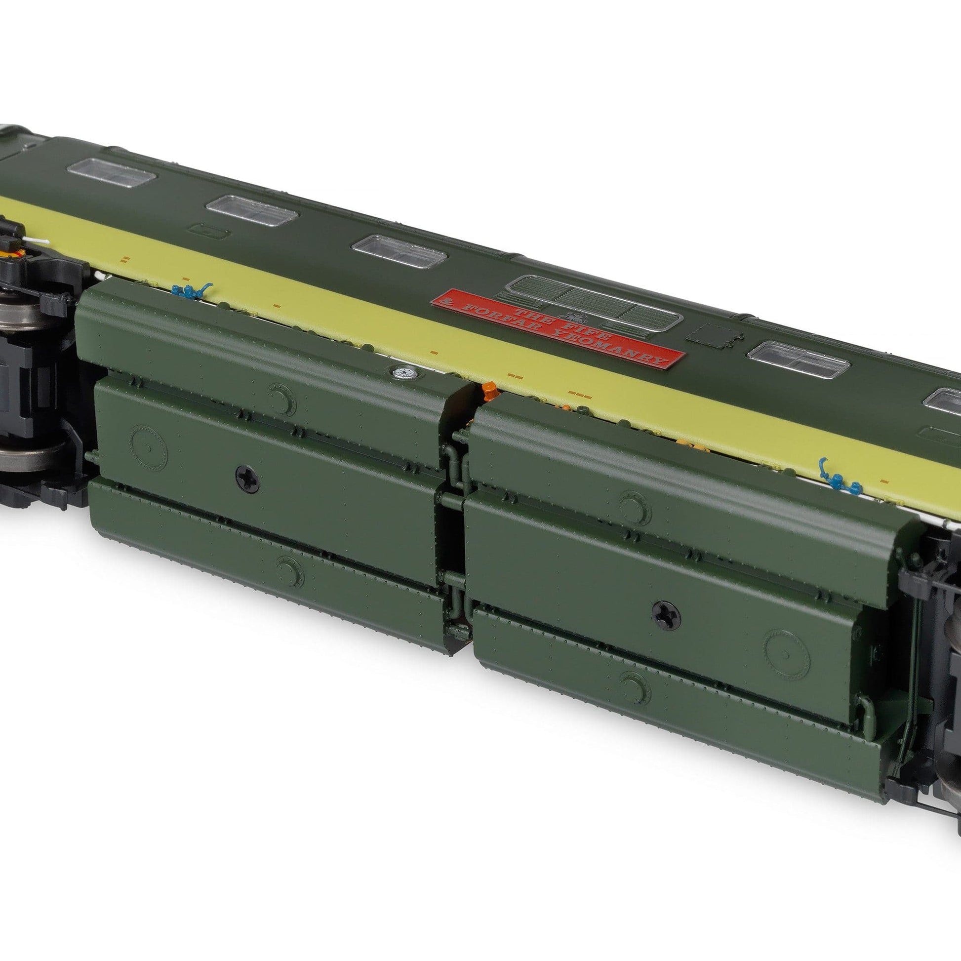 - Separat angebrachte geätzte Metall- und hochpräzise Kunststoff-Detailteile, darunter Haltegriffe, Trittstufen, Scheibenwischer, Namensschilder, Wappen und mehr.