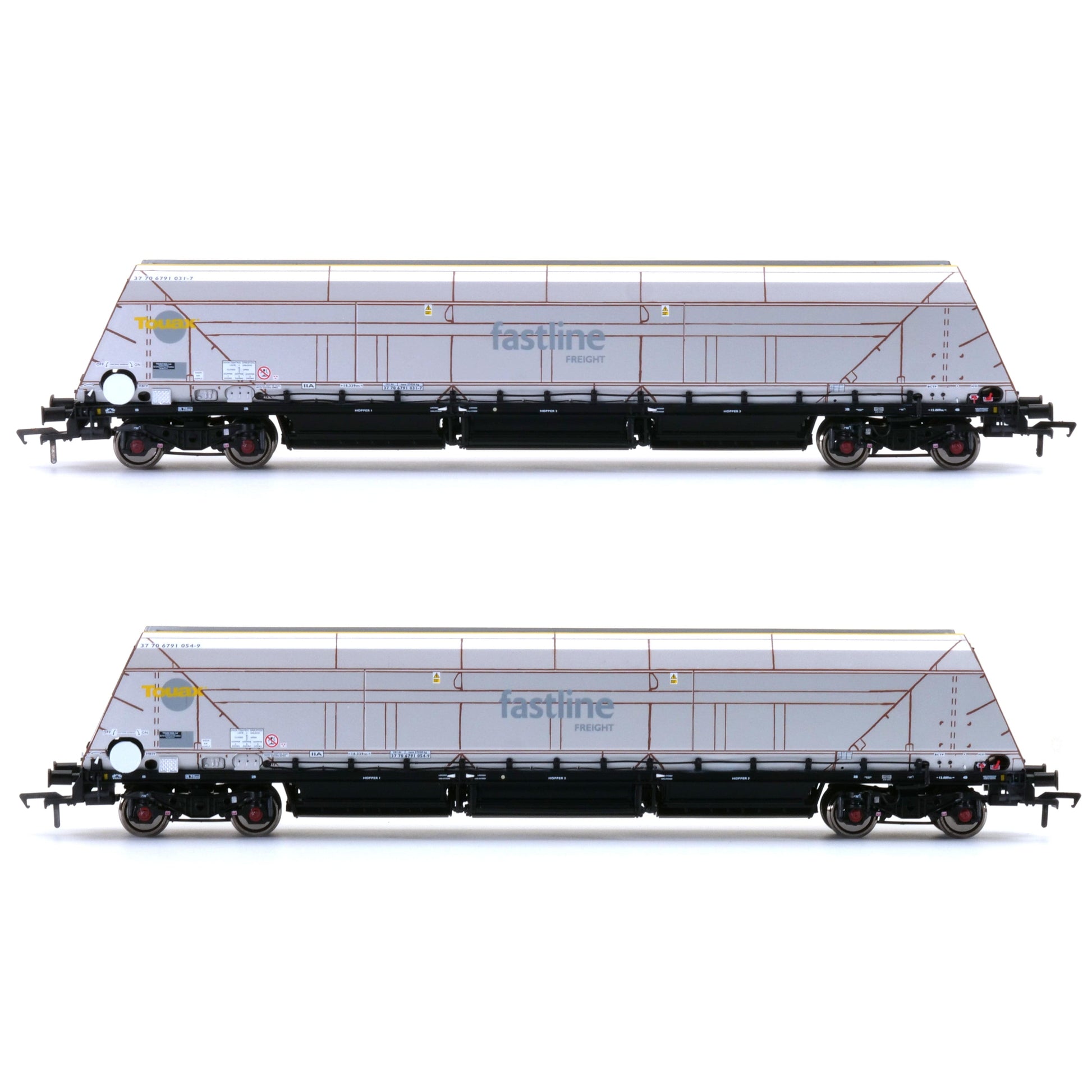 - Zweierpackung Wagen, jeder mit individueller Betriebsnummer und Dekoration