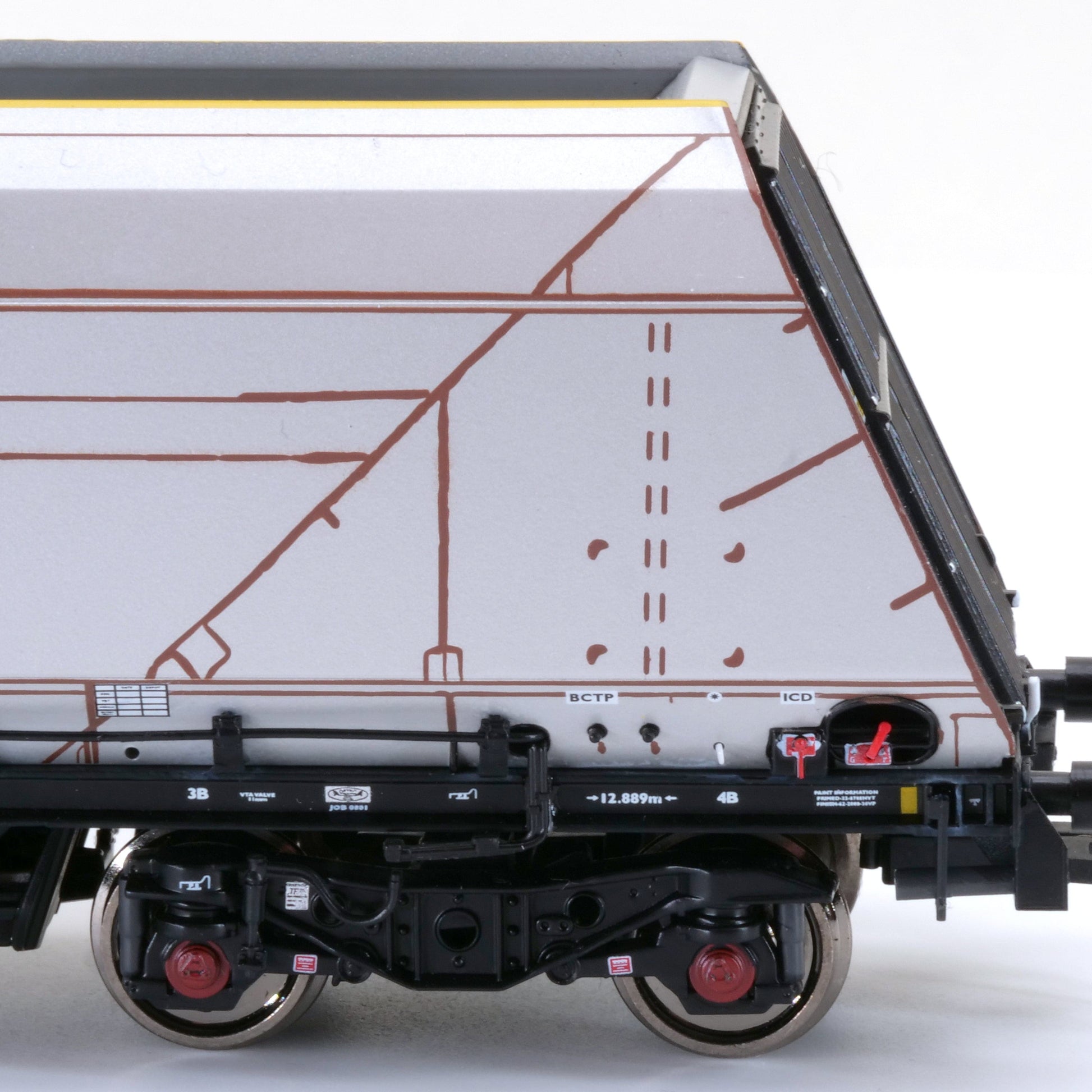 - Hochdetaillierte TF25-Drehgestelle mit geringer Spurkraft, Bremsklötzen in Radlinie, separaten Bremsbacken und Bremsnachsteller.