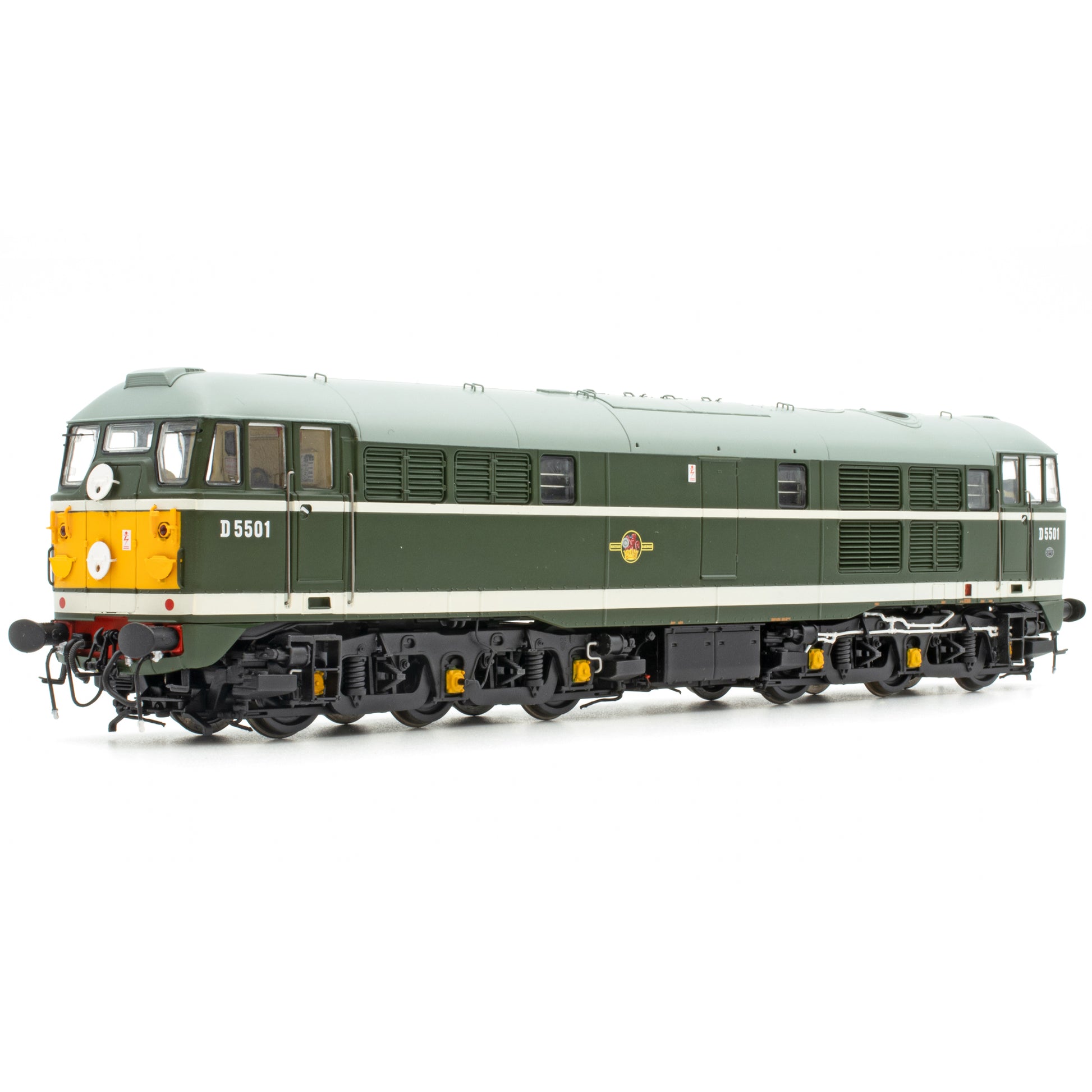 Die im November 1957 in Stratford (Bahnhof 30A) neu in Dienst gestellte D5501 war erst die zweite Lokomotive des Typs 2, die im Rahmen des Pilotprojekts von Brush in Falcon Works (Loughborough) ausgeliefert wurde und zu den 20 Lokomotiven der Baureihe gehörte. Das zu Hawker Siddeley gehörende Unternehmen war so stolz auf seine neuen 1250 PS starken A1A-A1A-Maschinen, dass dieses Exemplar die ersten Wochen im Werk Hazel Grove der neu erworbenen Schwesterfirma Mirrlees ausgestellt war. Dort wurde der 12-Zylinder-Turbomotor JVS12T gefertigt, der ursprünglich in dieser Baureihe verbaut worden war. Die D5501 war hauptsächlich in East Anglia im Einsatz, mit gelegentlichen Fahrten quer durch London oder über Land. Anfangs wurde sie hauptsächlich im Schnell- und Nahverkehr sowie im Paket- und Güterverkehr eingesetzt, wobei letztere Aufgaben überwogen, als leistungsstärkere Diesellokomotiven auf den Hauptstrecken der Great Eastern Railway und der Cambridge Railway eingeführt wurden. Mitte der 1960er-Jahre wurde die D5501 an die Serienlokomotiven ihrer Baureihe angepasst. Dabei verschwanden die charakteristischen Fensterumrandungen und die hellblauen Streifen am Rumpf. So ist sie auch im Accurascale-Modell dargestellt. Später in 31001 umnummeriert, gehörte sie zu den ersten „Toffee Apples“ – benannt nach der Form des Bedienhebels –, die außer Dienst gestellt wurden. Sie wurde im Juli 1976 ausgemustert und im Januar 1977 in Doncaster verschrottet.