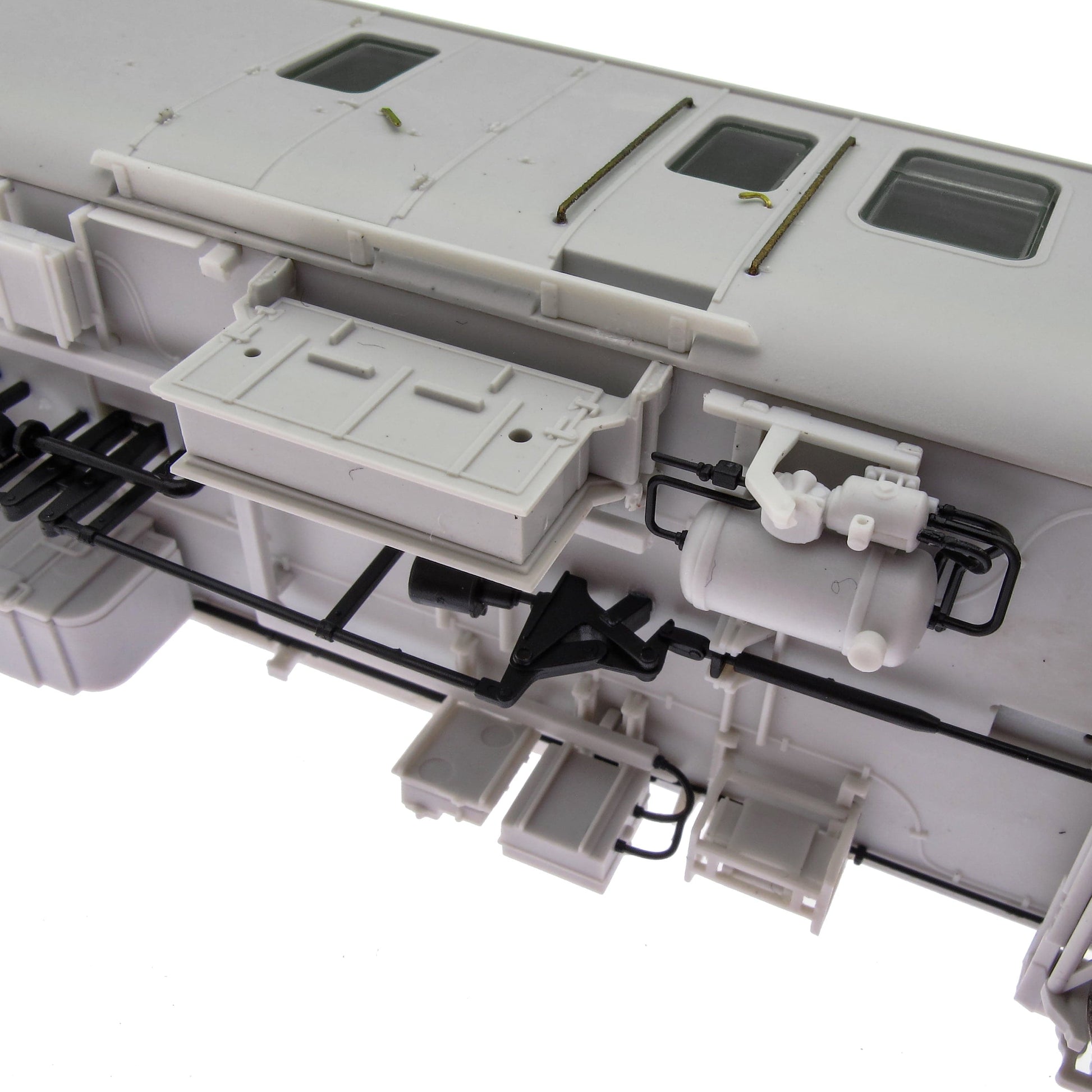 - Separat angebrachte geätzte Metall- und hochpräzise Kunststoffteile, darunter Handläufe, Brems-/Dampfheizungsrohre, ETH-Kabel und -Buchsen, Trittstufen, Attrappen-Kupplungskopf und Dachlüfter