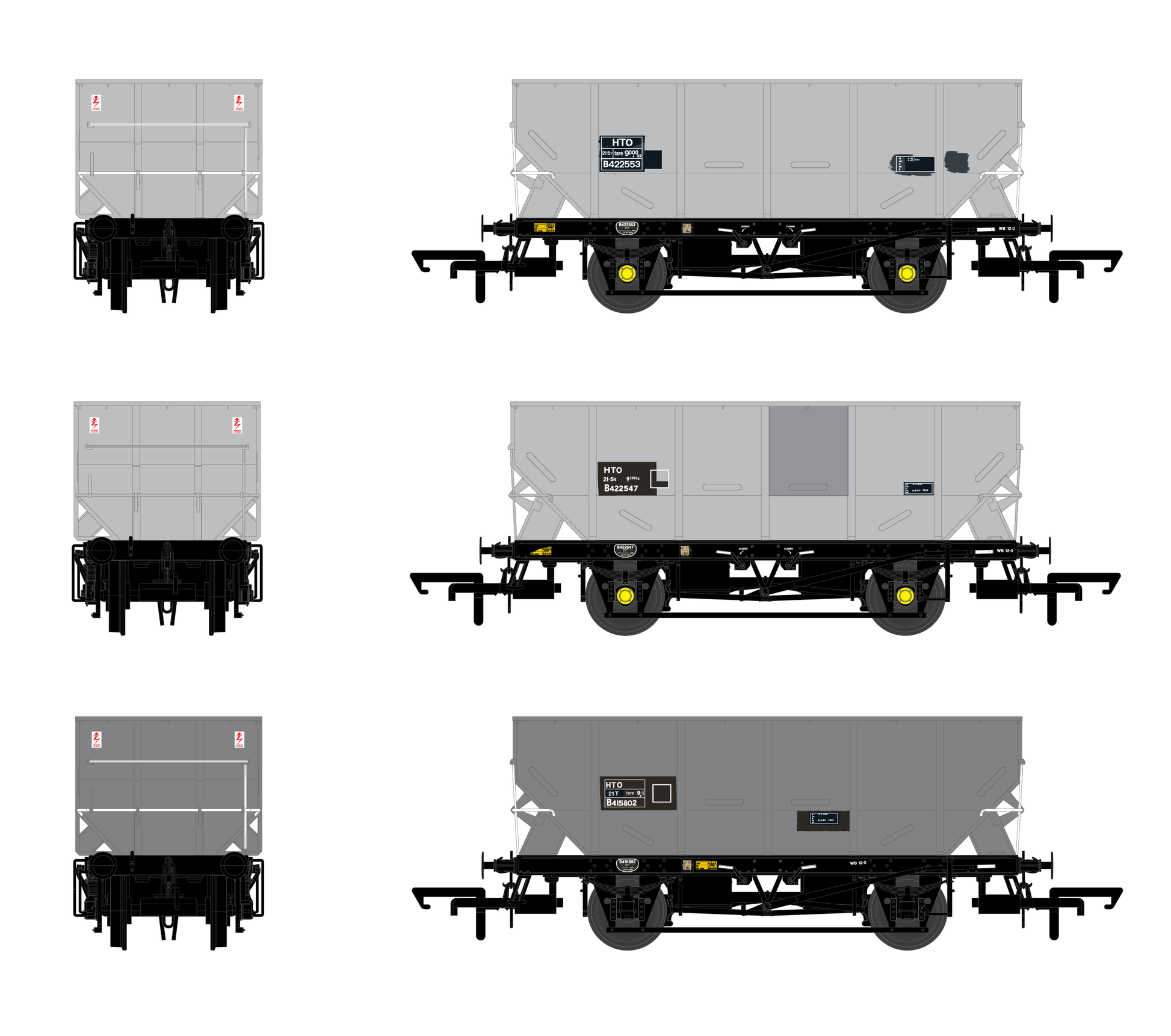 Originale 5-Rippen-Karosserie mit Rollenlagern und gefetteten Achslagern. BR-graue Lackierung mit HTO-Kennzeichnungen.